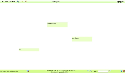 Se abbiamo bisogno di una lavagna virtuale per una videoconferenza, ci pensa Skrbl. In questo sito è possibile creare un profilo gratuitamente ed avere accesso ad una clipboard su cui scrivere in più persone, accessibile da qualsiasi pc dotato di internet. A differenza di altri servizi, questo permette di inserire anche delle immagini oltre ovviamente al testo. Tecnologia Web2 dotata di Ajax permette l’aggiornamento live della lavagna senza necessità di effettuare il refresh.
