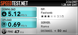 Conosco questo sito da circa 3 mesi per effettuare test di velocità, ma essendo senza server in Italia non era tanto attendibile. Da un po di giorni invece, SpeedTest ha inserito 2 server nuovi, uno a Milano Brescia e l’altro a Roma. Se siete curiosi di testare la vostra connessione Adsl potete fare il test e regolarvi. La migliore in italia dalle prove risulta ovviamente Fastweb. Sarei curioso di sapere dai possessori di Fastweb 20mb, Alice 20mb o Tiscali 24mb a quanto scaricano e fanno upload con questo test, magari scrivendolo nei commenti.