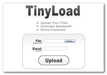 Nuovo servizio di storage per file di grandi dimensioni, si tratta di TinyLoad, un sito molto minimalista che ci permette di poter sharare file di grandi dimensioni, addirittura fino a 300mb.