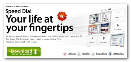 Il nuovo browser per navigare in internet, targato Opera, è arrivato alla versione 9.2 ed è pronto per il download. Le novità sono molte per il velocissimo browser, a mio avviso gia molto più veloce di Firefox e ovviamente di Internet Explorer, ma ora grazie alla funzione Speed Dial è ancora più rapido sulle pagine che abbiamo preimpostato, infatti le pagine si aprono quasi istantaneamente, sembra di volare.