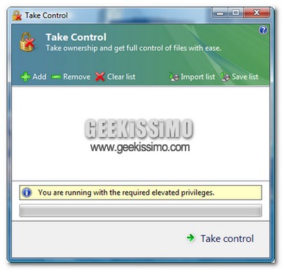 Con TakeControl (da avviare con privilegi da amministratore), basta scegliere i file di cui “riappropriarsi” al 100%, fare click su “Take Control” ed il gioco è fatto. Che aspettate a scaricarlo?!