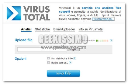 Ognuno di noi ha il proprio antivirus lo so, ma i file maligni sono talmente tanti e nuovi che non è detto che il nostro antivirus faccia il suo lavoro dandoci sicurezza al 100%. Andando su Virustotal invece potrete effettuare la scansione dei file sospetti utilizzando automaticamente i migliori 30 antivirus del mercato, senza dover installare nulla, veramente un ottimo servizio.