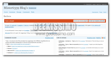 .wrap{max-width:none}Una volta salvato il tutto, ricaricate il file sul vostro server ftp e quello che vedete sotto è il risultato. Ad allargarsi non è solo l’HomePage, ma tutto il centro di amministrazione. Se provate questo trucchetto su delle versioni vecchie di WordPress fatecelo sapere, in questo modo potremo confermare il funzionamento su altre versioni di WordPress.