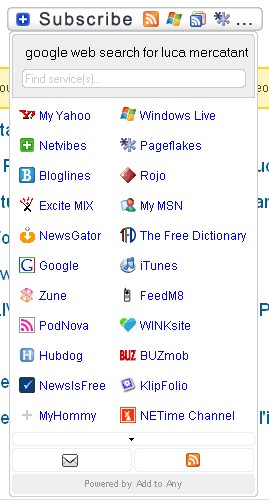 Una piccola utilità che il servizio mette a disposizione è quella di poter aggiungere automaticamente con un semplice “click” il feed ai lettori più famosi in circolazione.