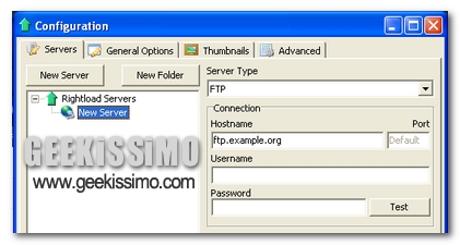 Rightload, infatti, abilita questa funzionalità. E’ possibile prelevarlo gratuitamente presso il sito dell’applicazione. Dopo aver installato velocemente il programma, è necessario configurare Rightload per la connessione al server. Sono richiesti i parametri fondamentali di connessione FTP al server: tipo di connessione (SFTP, etc.), hostname (l’indirizzo del servizio di hosting), username, password, porta di connessione (fornita dal servizio) ed altre impostazioni (l’attivazione della modalità passiva, ad esempio). L’immagine seguente illustra la finestra d’impostazione: