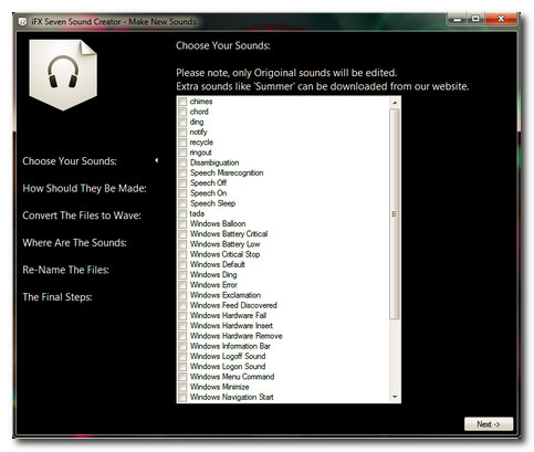 Stufi dei suoni standard di Windows 7? iFX Seven Sound Creator è l’utility che fa per voi. Con essa potrete infatti dar vita a degli schemi di sonori personalizzati fin nei minimi dettagli, scegliendo per filo e per segno i programmi da usare per registrare i suoni e convertire gli stessi in Wave.