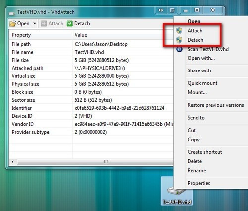 La procedura standard per montare i VHD su Windows 7 non è il massimo della comodità, ammettiamolo. Ecco il motivo che ha spinto il programmatore Josip Medved a sviluppare un programma come VHD Attach, il quale consente di caricare gli hard disk virtuali su Windows 7 e Windows 2008 R2 dal menu contestuale, con un semplice click. Se usate spesso i VHD, non potete assolutamente lasciarvelo sfuggire.