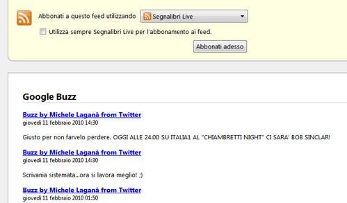 se clicco su buzz in gmail mi fa sottoscrivere il feed per gmail (che tra l'altro non funziona)