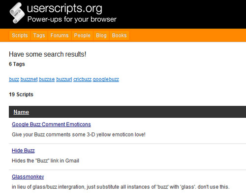 Così come per ogni altro servizio di ‘big G’, anche per Google Buzz sono disponibili svariati script utente che permettono di personalizzare e ampliare le funzioni di quest’ultimo. Potete trovarli facilmente facendo una ricerca qui. Tra quelli sicuramente funzionanti c’è Google Buzz Count Hide, che consente di rimuovere il conteggio dei messaggi non letti dal collegamento a Buzz presente in Gmail.