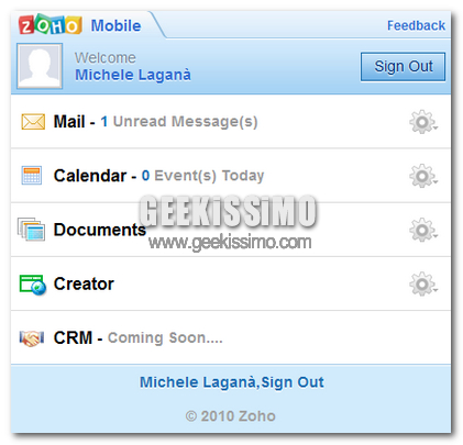 Il primo aggiornamento è quello che riguarda l’interfaccia grafica, resa molto più semplificata e molto più user-frendly e molto più dedicata al mondo dei dispositivi Touch, infatti le icone sono più grandi. Aggiunta anche la possibilità di collegarsi a Zoho grazie all’account di di Google, Google APP e Yahoo!, questo vi eviterà di dovervi registrare sul sito ufficiale. Grazie alla versione Mobile, tutte i documenti che caricate su Zoho docs, saranno modificabili tramite cellulare in qualsiasi momento della giornata, basta una connessione ad internet.