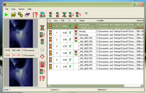 Non dovremo far altro che visualizzare il percorso ed andare ad eliminare le immagini superflue. Altrimenti come mostrato nella barra degli strumenti superiore è possibile eliminare le immagini secondo le didascalie riportate. Chiaramente la procedura si complica qualora le immagini da visionare siano migliaia ma il procedimento è sempre lo stesso. Il software si dimostra molto efficiente e veloce quando deve confrontare le immagini e trovare i doppioni.