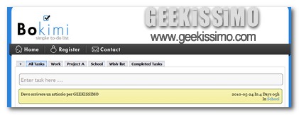 Bokimi è in grado di gestire le nostre attività in un modo molto semplice, infatti basta inserire una piccola descrizione di quello che sarà il nostro prossimo impegno o il prossimo evento, selezionare una data ed un orario, ed inserirlo in una delle varie categorie di Bokimi. Infatti questo servizio, a differenza di altri ci dà la possibilità di suddividere i nostri impegni per categoria ad esempio un impegno nel nostro lavoro, oppure in un progetto, o anche un impegno scolastico e per finire un evento importante che fa parte della nostra lista dei desideri.