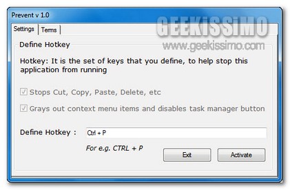 Prevent costituisce infatti una piccola applicazione gratuita e tutta dedicata agli OS Windows che, nel giro di qualche click e con estrema facilità, consentirà di bloccare un buon numero di operazioni eseguibili direttamente dall’Esplora risorse semplicemente previa pressione di una data hotkey.