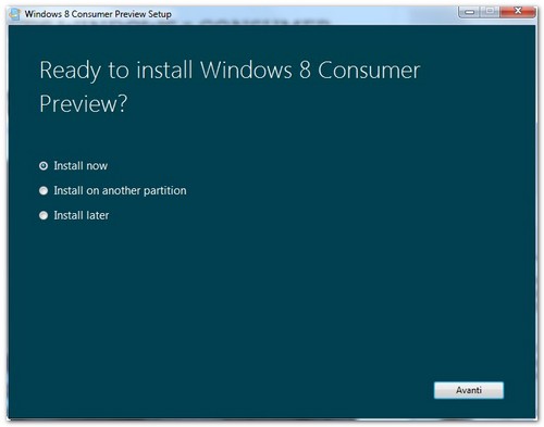 Potete scaricare Windows 8 Consumer Preview dal sito di Microsoft. Oltre alle classiche immagini ISO delle versioni a 32 e 64 bit dell’OS, è stato pubblicato un nuovo pacchetto di installazione automatico che controlla i requisiti del PC, scarica l’immagine ISO del sistema operativo (attualmente disponibile solo in Inglese, Tedesco, Francese, Cinese e Giapponese) e permette di installarlo sul computer aggiornando Windows 7 o creando una nuova partizione per il dual-boot.