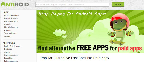 Antiroid vi consente di effettuare una ricerca inserendo il titolo di un gioco di cui volete trovare un’alternativa gratuita oppure potrete navigare fra le categorie messe a disposizione dal sito web che risulta davvero ben organizzato.