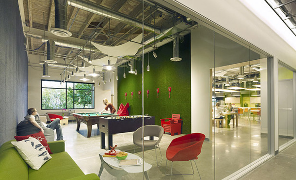 Anche Skype ha deciso di dare una rispolverata al suo quartier generale di Palo Alto, ma ha cercato di applicare uno stile in grado di differenziarsi da quello di Google. L’intero progetto è firmato da Blitz che ha sviluppato uno spazio che conta ben 20.000 metri quadrati in grado di ospitare i 250 dipendenti della famosa azienda che si occupa di potenziare/migliorare il programma VoIP.