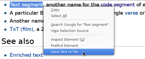 Oggi vogliamo consigliarvi una comoda estensione di Firefox che aggiungerà una nuova voce al menu tasto destro. In pratica, potrete salvare immediatamente il testo selezionato in un nuovo documento, saltando la procedura spiegata in precedenza.