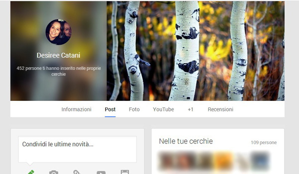 Non solo la copertina è cambiata, ma tutto il nuovo layout si concentra al centro e migliora l’esperienza d’uso dell’utente. Le modifiche non sono state effettuate solo per i profili personali, ma anche le pagine accolgono lo stesso identico design, ma ovviamente nel rettangolo di sinistra includeranno altri bottoni: seguire la pagina, fare +1 oppure condividerla.