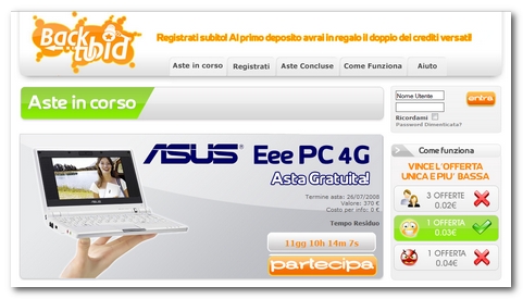 Neanche un mese fa vi avevo parlato di BackToBid un sito di aste al ribasso trasparente, perchè trasparente? Perché alla fine di ogni asta vengono pubblicate le cronologie, come era stato promesso al lancio del servizio, delle offerte con i nickname degli offerenti. Da subito, nei commenti, sono usciti fuori parecchi dubbi che hanno scatenato delle vere e proprie discussioni. Proprio su questo mi sono andato a soffermare, tuttavia alcuni ragionamenti non erano campati in aria, ed effettivamente uno la sicurezza al 100% non la può avere.