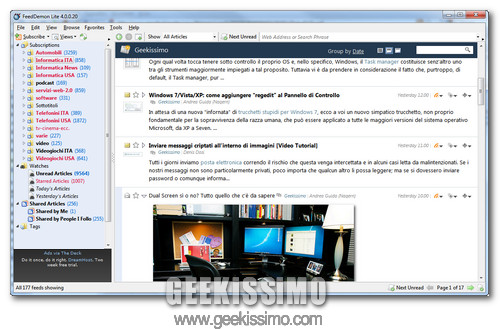 All’indomani dell’annuncio relativo alla chiusura di Google Reader, Nick Bradbury, lo sviluppatore del noto feed reader per Windows FeedDemon, ha fatto sapere che il suo software purtroppo sarebbe “morto” insieme al servizio firmato Mountain View. Una mesta novella, resa però meno amara dal rilascio di un’ultima versione di FeedDemon che funziona solo in locale (senza sincronizzazione con servizi online, quindi) ed offre gratis tutti i benefici della versione Pro, che veniva offerta solo a pagamento.